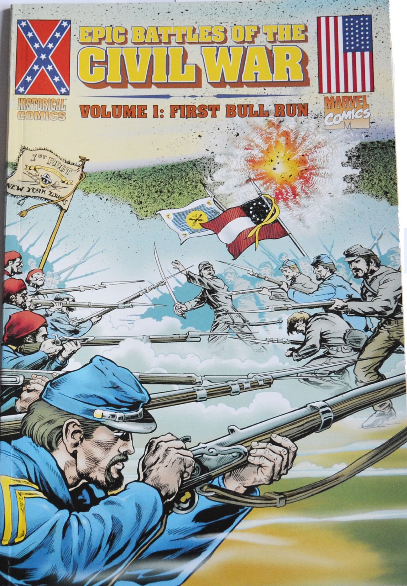 This was the first major battle of the Civil War. The Union army marched from Washington D.C. with the expectation that following this battle they would proceed to Richmond, Virginia, the Confederate capital, and end the war. Instead, the Union army was defeated, the South had a new military hero, General T.S. "Stonewall" Jackson, and the divided nation prepared for a prolonged and devastating war. Part of the historical comic book series "Epic Battles of the Civil War," which were produced by noted Historians in cooperation with the world-famous Marvel Entertainment Group.